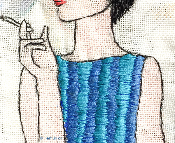 Pour cette broderie, j’ai utilisé un plus gros fil que le mouliné, mais je ne suis pas certaine que broder la totalité donnera un beau résultat. À voir donc.