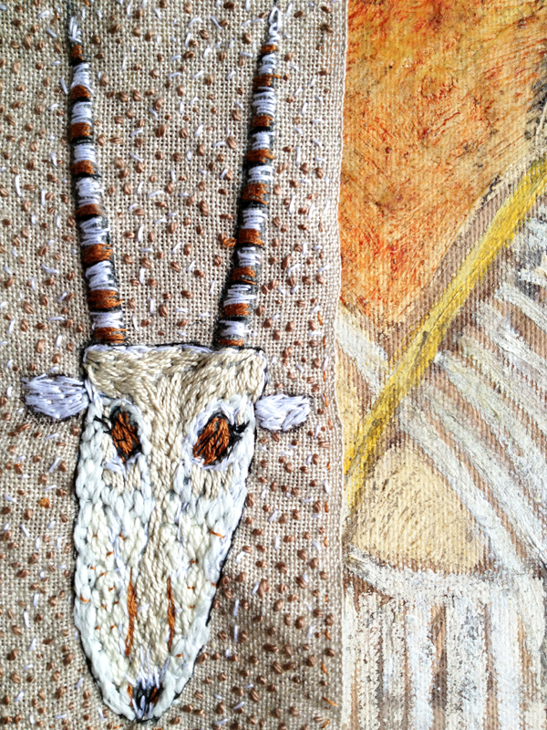 Une série de broderies sur les crânes et les têtes d’antilopes…