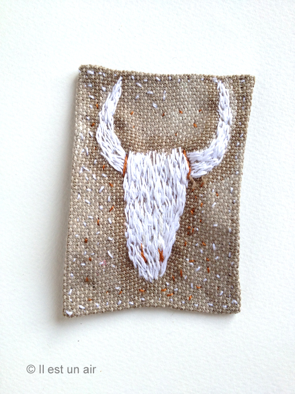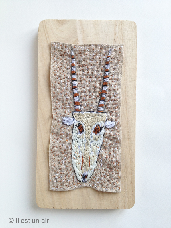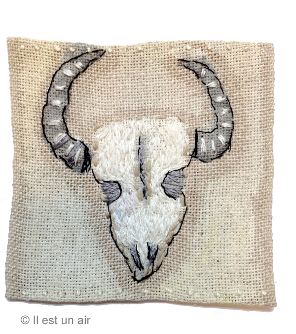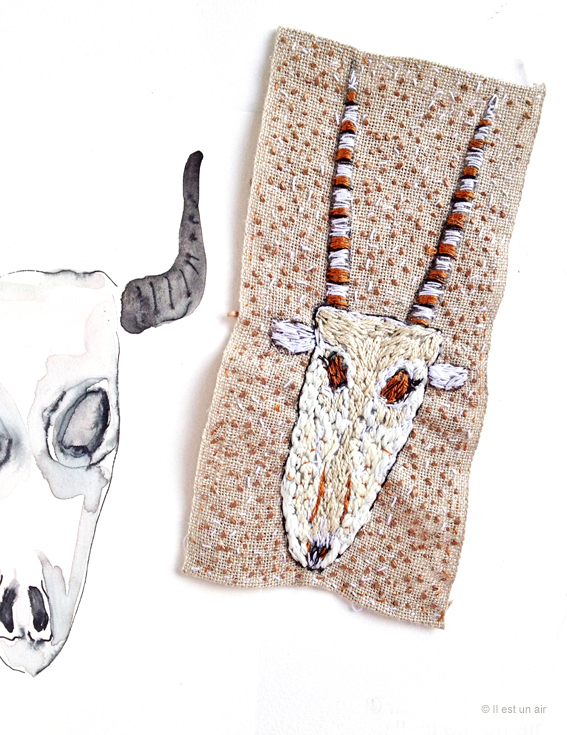 Une série de broderies sur les crânes et les têtes d’antilopes…