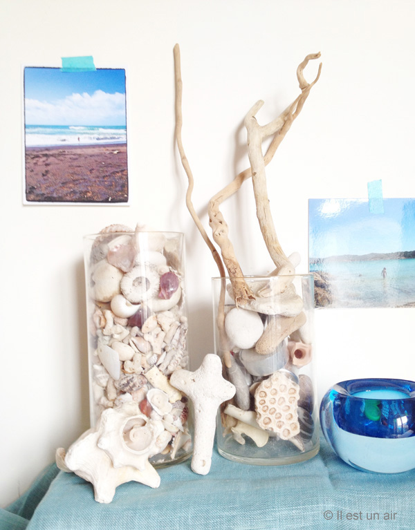 Il y a une chose qui me rend heureuse : marcher sur la plage, me promener à marée basse et ramasser coquillages, bois flottés, galets ou morceaux de verre polis par la mer.