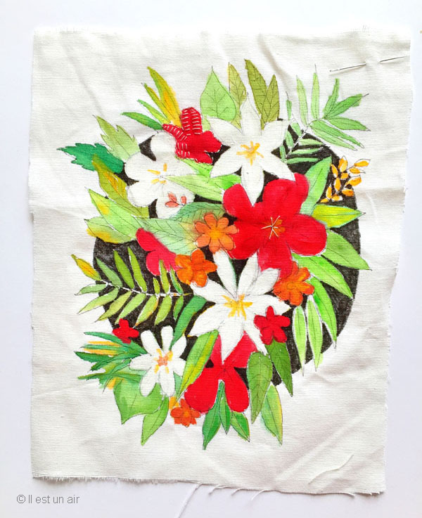 Alors, après les fleurs bleues, jaunes, noires ou rouges qui m’ont bien occupée ces derniers temps, j’ai voulu aller plus loin et broder des compositions plus figuratives.