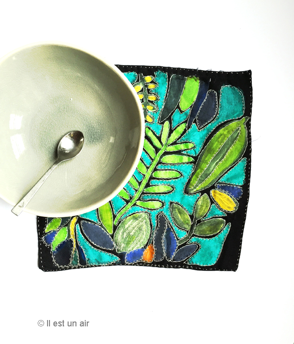 Ces coupons peints deviendront peut-être des trousses, des pochettes, des sets de table ou des protège-carnets.