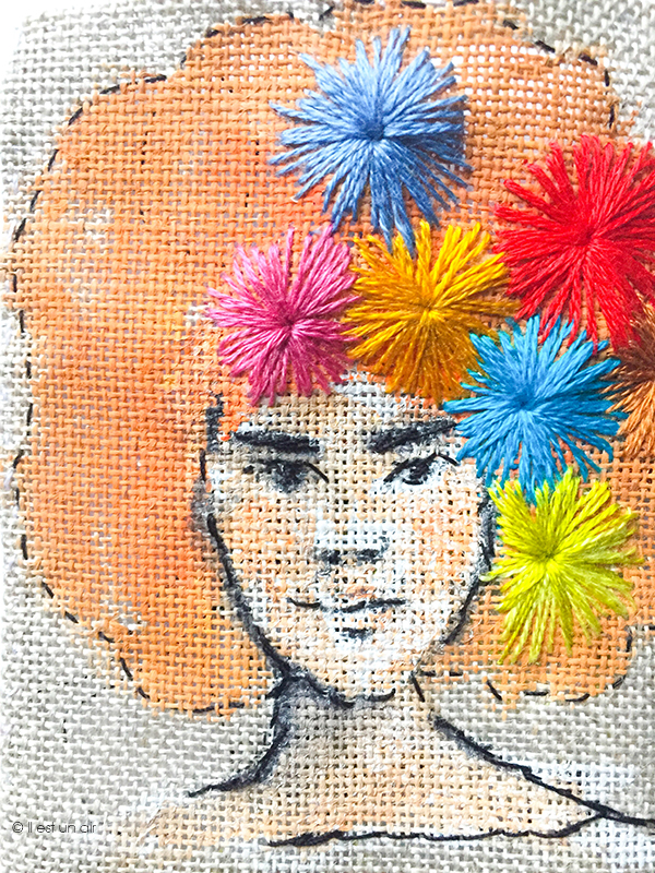Je ne me lasse pas : encore un portrait brodé. J’ai délaissé mes coupons de toile de jean pour broder sur du lin. Cette fois-ci, j’ai voulu donner un côté plus réaliste au visage.