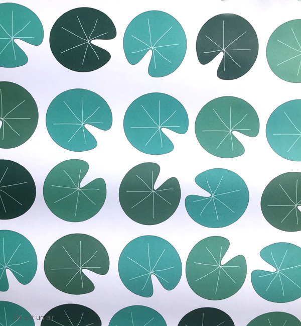 Et la version feuille de nénuphar dans le même esprit. La fleur est en cours. (Les dessins sont réalisés avec Illustrator).