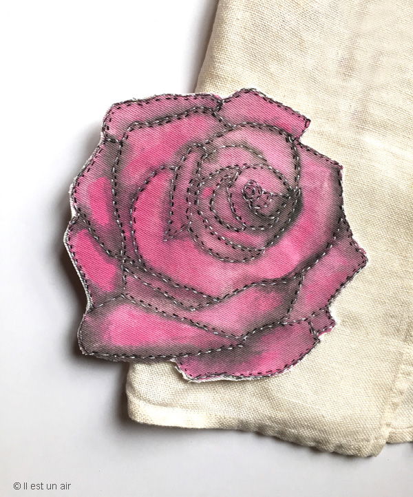 Rose peinte et brodée